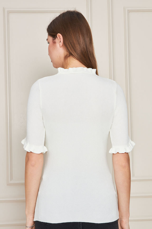 เสื้อถักแขนสั้นมีระบายสำหรับผู้หญิงเสื้อยืดเสื้อถักระบายมีสไตล์ระบายอากาศได้สวมใส่สบาย