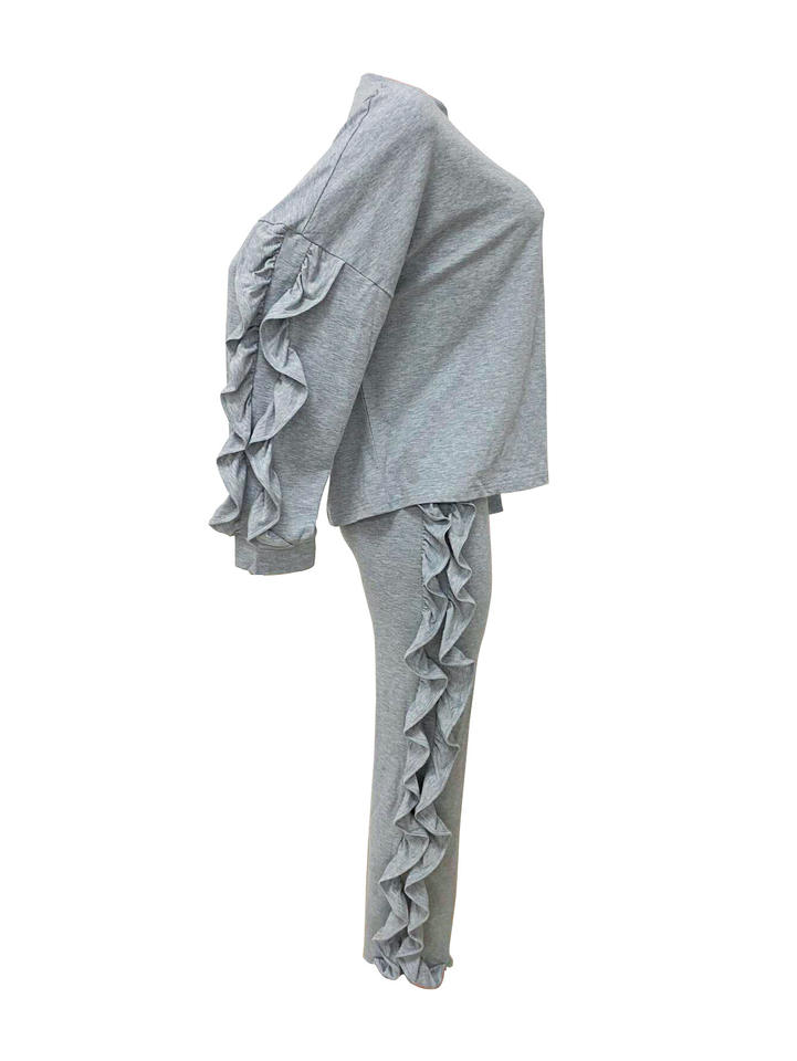 ชุดแฟชั่นเสื้อแขนยาวลำลองแบบสบายๆ พร้อมกางเกงทรงหลวมสำหรับผู้หญิง 2 ชิ้น