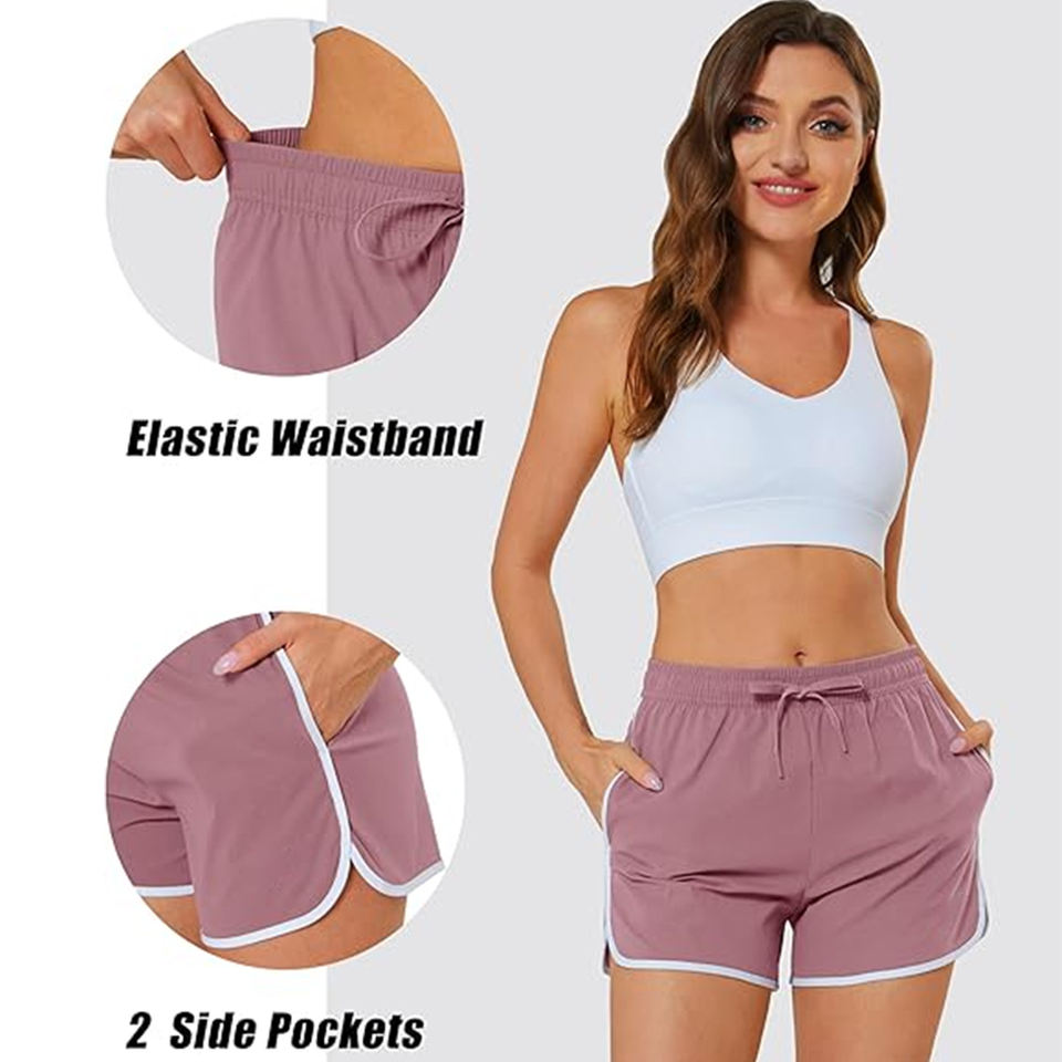 กางเกงขาสั้นสำหรับวิ่งของผู้หญิงดีไซน์ป้องกันการเสียดสีสำหรับการวิ่งระยะยาว