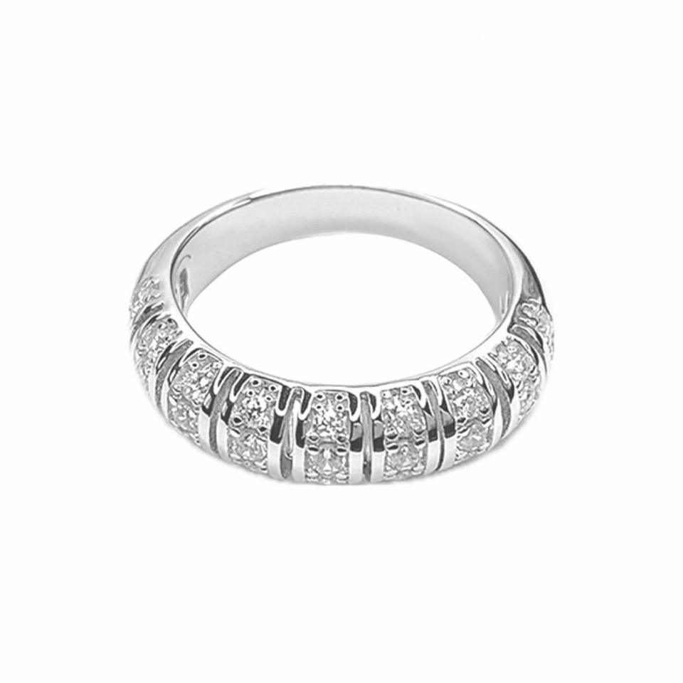 แหวนเพชรครึ่งวงกลมเงินแท้ S925 สำหรับผู้หญิง แหวนเพชรเต็มวงสไตล์วินเทจคาร์บอนสูง