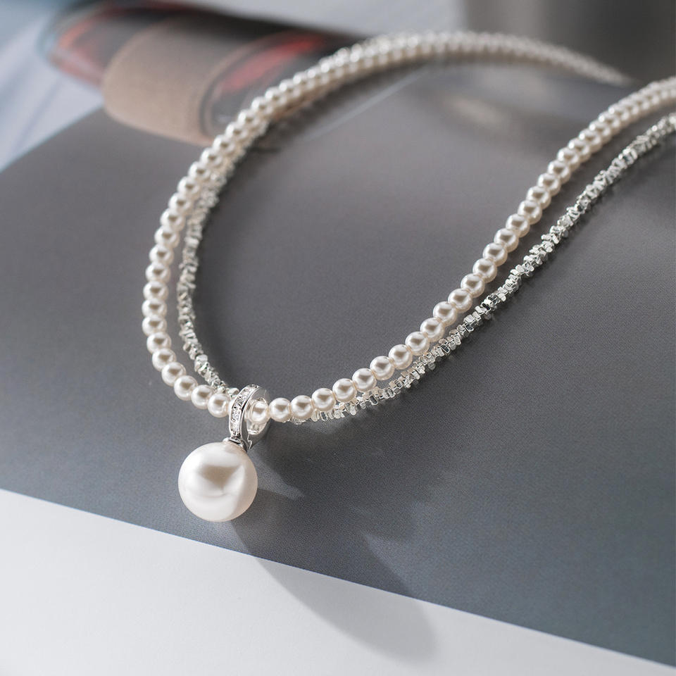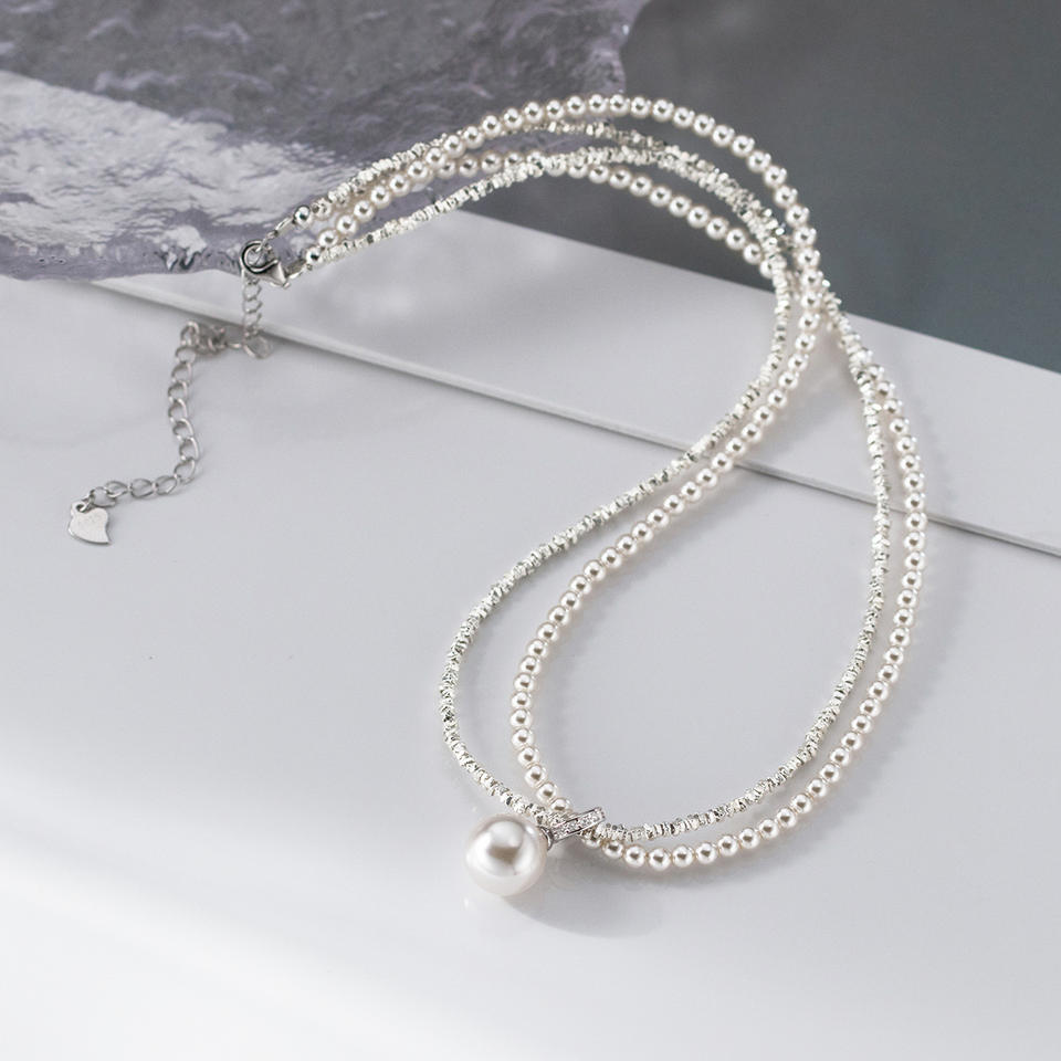 สร้อยคอสั้นสไตล์โบราณเงินแท้ S925 ประดับเพชร ดีไซน์เรียบหรู สไตล์ญี่ปุ่น-เกาหลี ประดับมุก สำหรับฤดูร้อน