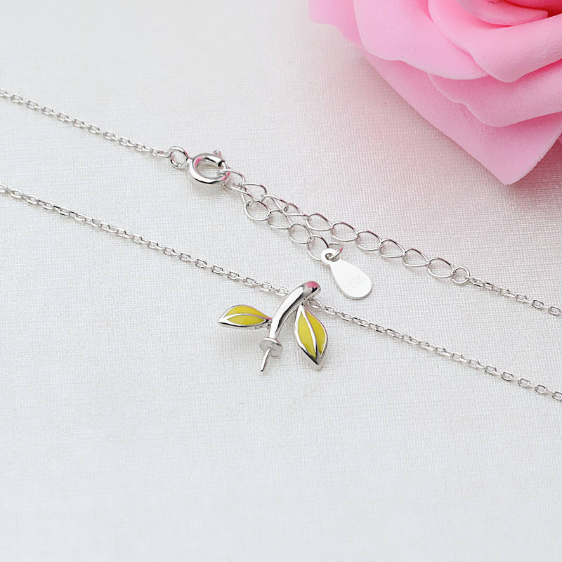 สร้อยคอจี้รูปแอปเปิ้ลเงินแท้ S925 สำหรับผู้หญิง พร้อมไข่มุกแฟชั่น เครื่องประดับ DIY โซ่คล้องไหปลาร้าแบบเปล่า ฝาครอบรูปใบไม้ สำหรับทุกคน