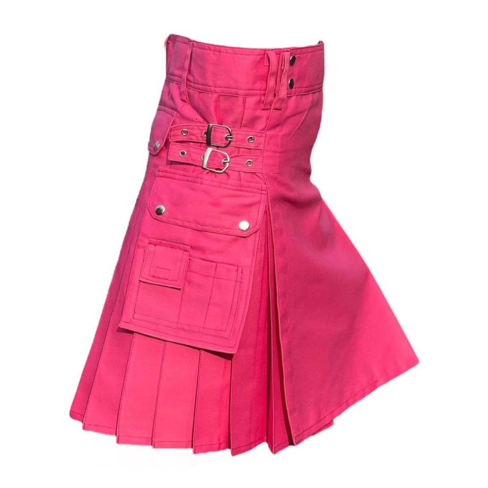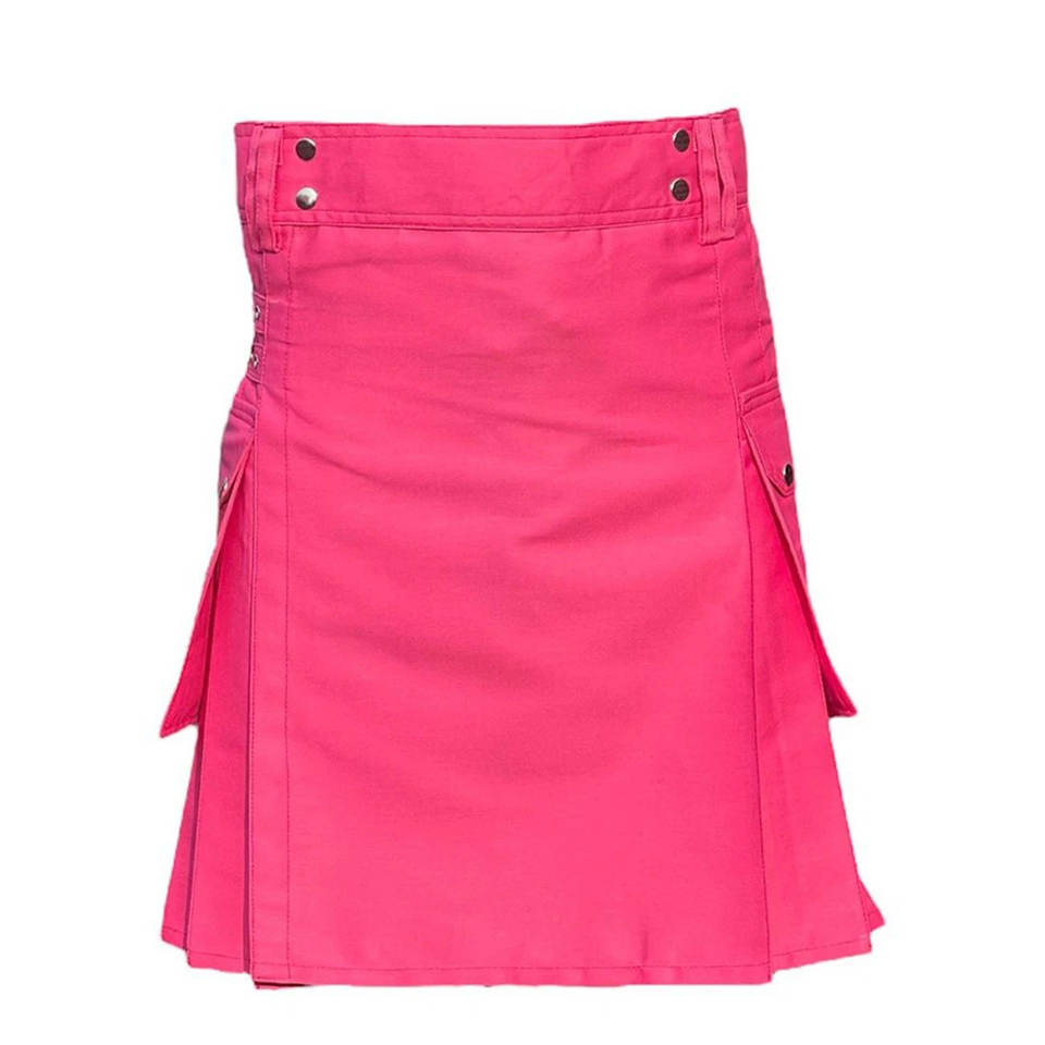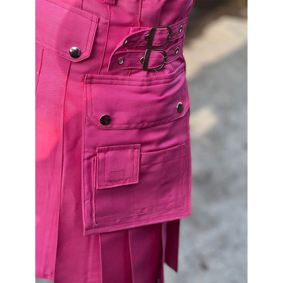 กิ๊ตส์ผ้าฝ้ายสีชมพูสไตล์สก็อตสำหรับผู้หญิง แบบมีกระเป๋าอเนกประสงค์ ขายส่ง รับผลิตแบบ OEM ODM ปี 2026