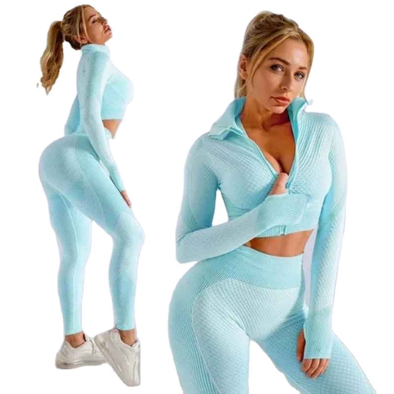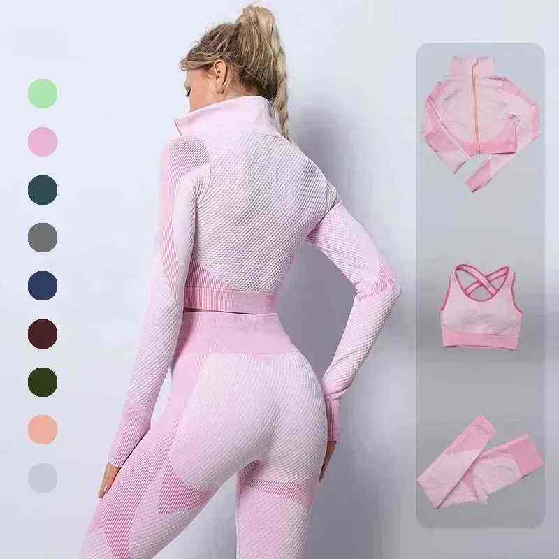 ชุดโยคะ3ชิ้นยาวถึงเข่าสีทึบของผู้หญิงเสื้อกล้ามเอวสูงกางเกงเอวสูงระบายอากาศได้ดีเสื้อผ้าออกกำลังกายในยิมผ้าฝ้าย100%