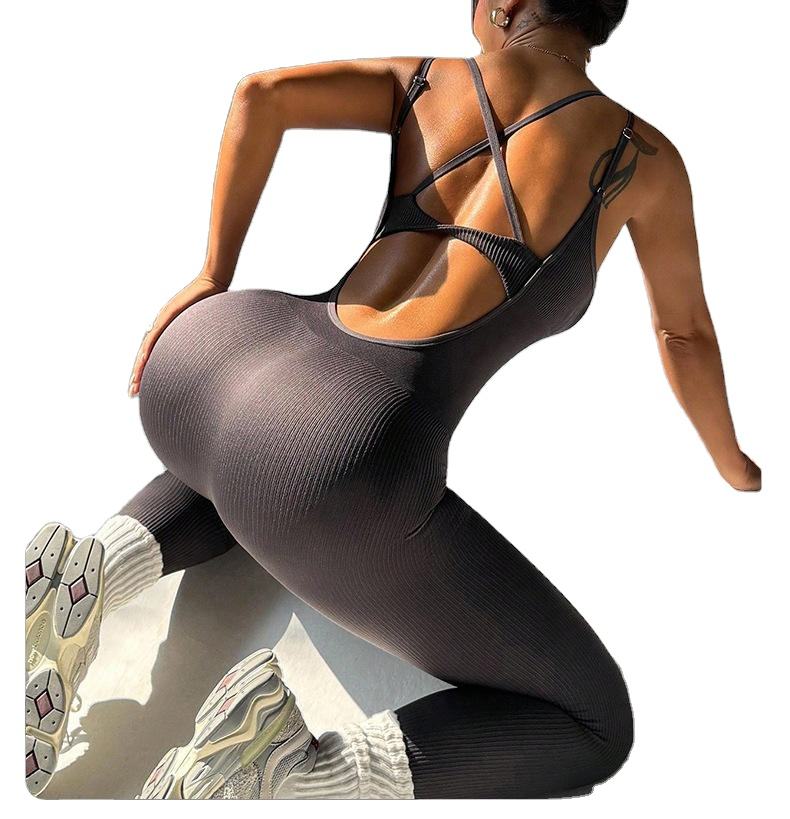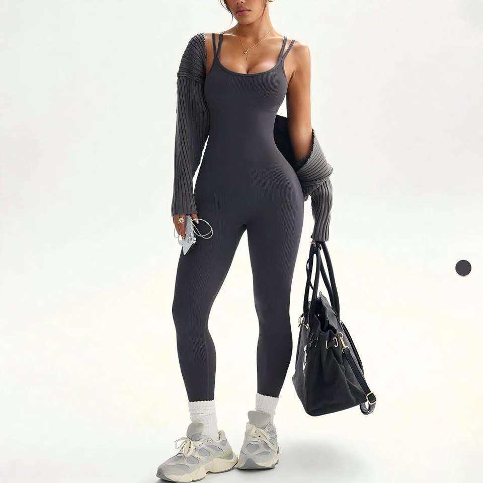 ชุดบอดี้สูทโยคะไร้ตะเข็บสำหรับผู้หญิง สายรัดสองชั้นในตัว แบบไม่มีแขน โชว์หลังสวยงาม เหมาะสำหรับออกกำลังกาย ฟิตเนส เล่นกีฬา และฝึกซ้อม