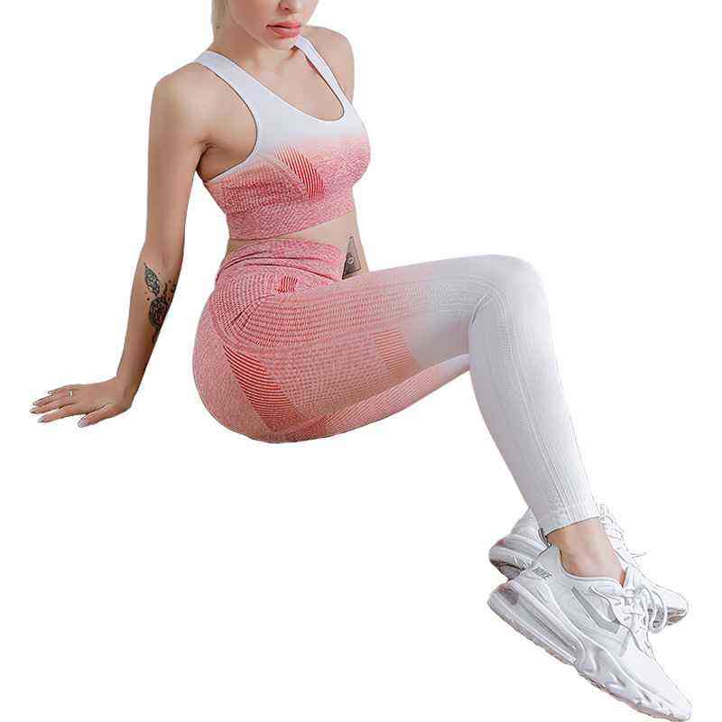 ชุดโยคะผู้หญิงแบบไร้ตะเข็บลายไท-ได พร้อมกางเกงกีฬาเอววี ช่วยยกสะโพก กางเกงออกกำลังกายระบายอากาศได้ดี เป็นมิตรกับสิ่งแวดล้อม