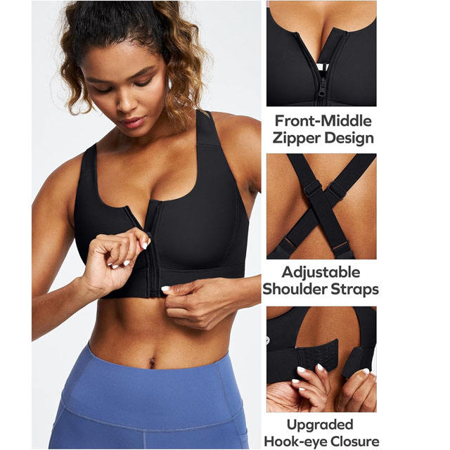 สปอร์ตบราไร้รอยต่อ XL สำหรับผู้หญิงชุดชั้นในแบบชิ้นเดียวมีซิปด้านหน้าดีไซน์สวยงามด้านหลังสำหรับวิ่งโยคะฟิตเนส
