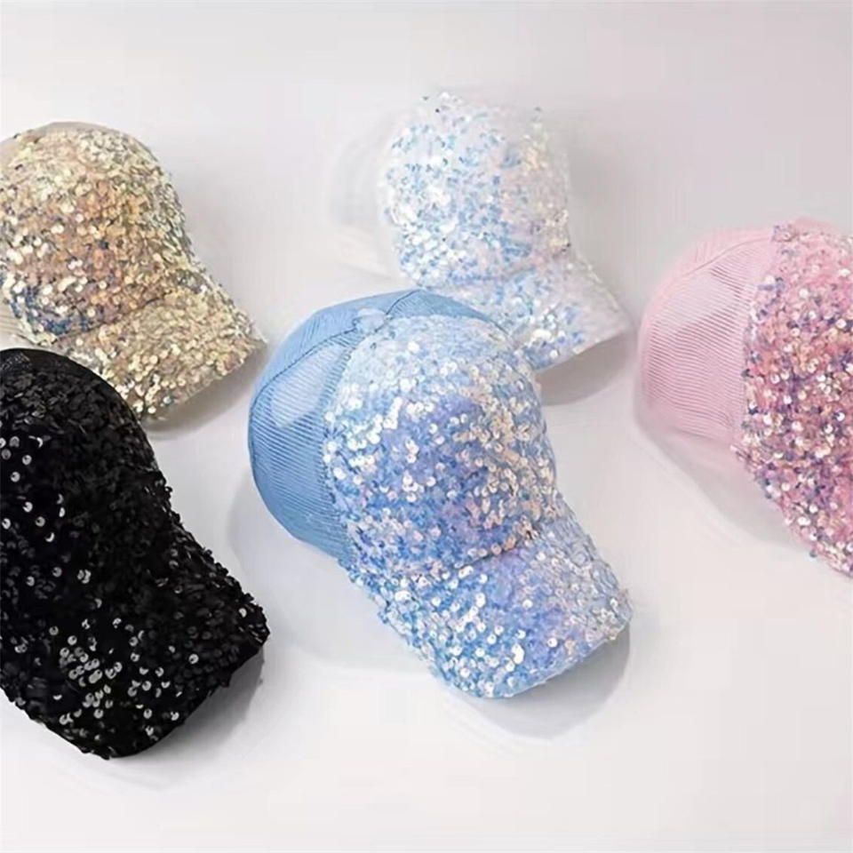 หมวกเบสบอลตาข่ายประดับเลื่อมสำหรับผู้หญิง หมวกกันแดดระบายอากาศสำหรับฤดูร้อน หมวกทรงปากเป็ด แฟชั่นสไตล์ลำลอง