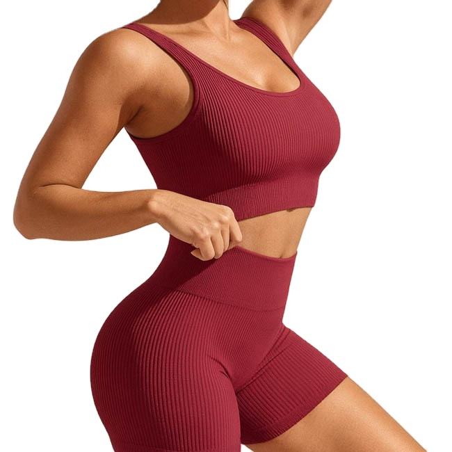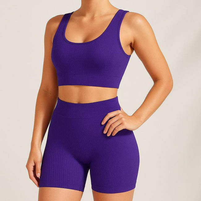 ชุดโยคะ 2 ชิ้น เสื้อชั้นใน+กางเกงขาสั้น สำหรับผู้หญิง ชุดออกกำลังกาย ชุดฟิตเนส
