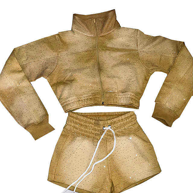 ชุดเสื้อผ้า2ชิ้นสำหรับผู้หญิงชุดเสื้อแจ็กเก็ตและกางเกงขาสั้นของผู้หญิงชุดเสื้อวอร์มประดับพลอยเทียมเสื้อและกางเกงขาสั้นสำหรับฤดูร้อน