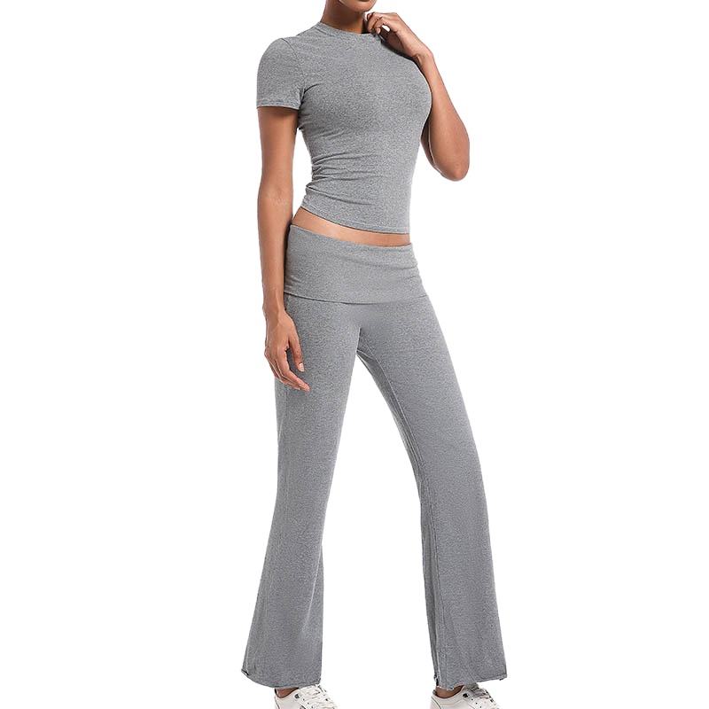 ชุดเซ็ตเสื้อยืดแขนสั้นและกางเกงขาสั้นผ้าแคนวาสสีพื้น 2 ชิ้นสำหรับผู้หญิง สวมใส่สบายๆ ผ้าฝ้าย 100% สำหรับฤดูใบไม้ผลิ/ฤดูร้อน