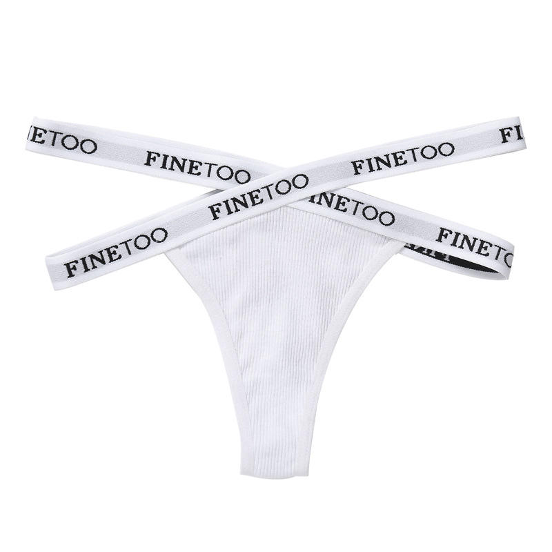 Women's Sexy Crisscross Letter Waistband High-cut Ribbed Cotton Thong Underwear D005