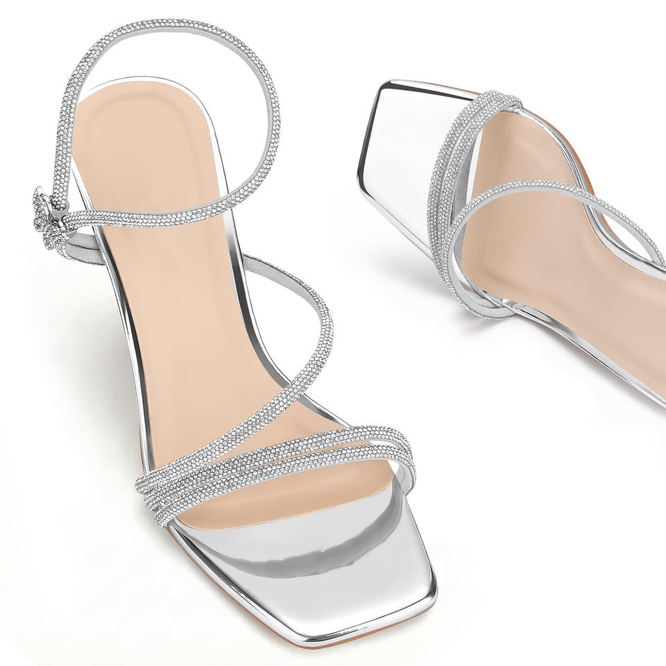 รองเท้าส้นเตี้ยแบบเปิดนิ้วเท้า สไตล์เซ็กซี่ลำลอง สายรัดข้อเท้า หัวเหลี่ยม สำหรับงานปาร์ตี้และงานแต่งงาน