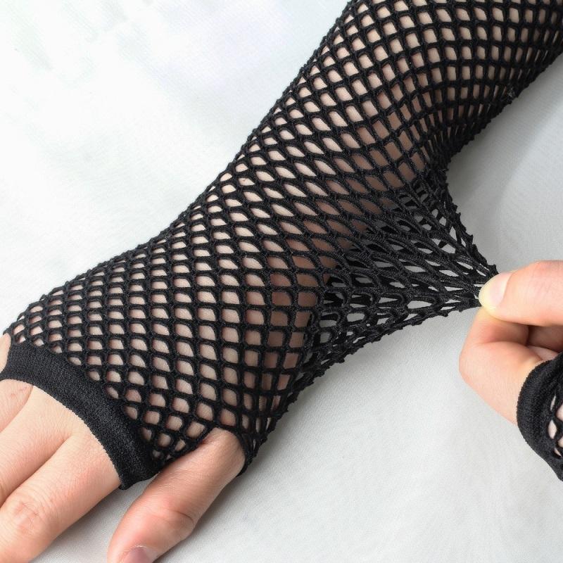 Women's Sexy Goth Dance Gloves New Mesh Neon Fishnet Mittens Black