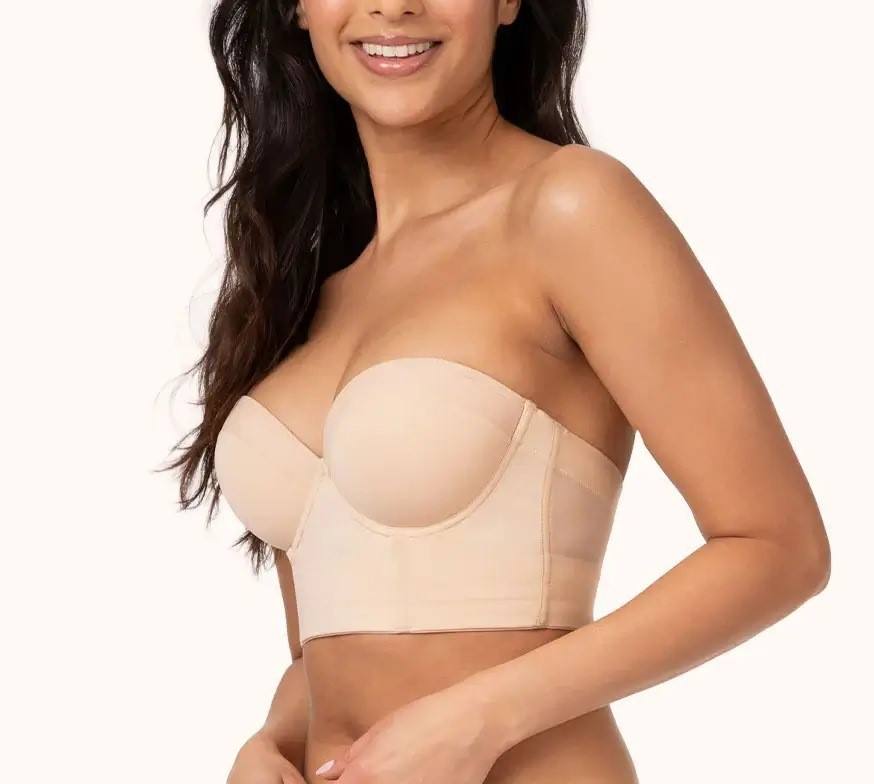 บราดันทรงเซ็กซี่ล่องหนสำหรับผู้หญิงดีไซน์ชิ้นเดียวไม่มีสายรัดด้านหลังมีขนาดพลัสไซส์ระบายอากาศได้โลโก้ถ้วย3/4แบบไม่มีสาย
