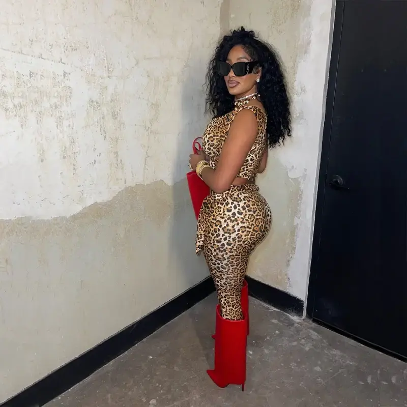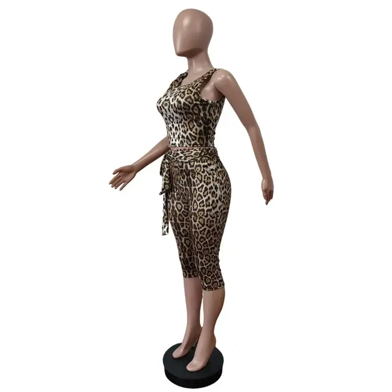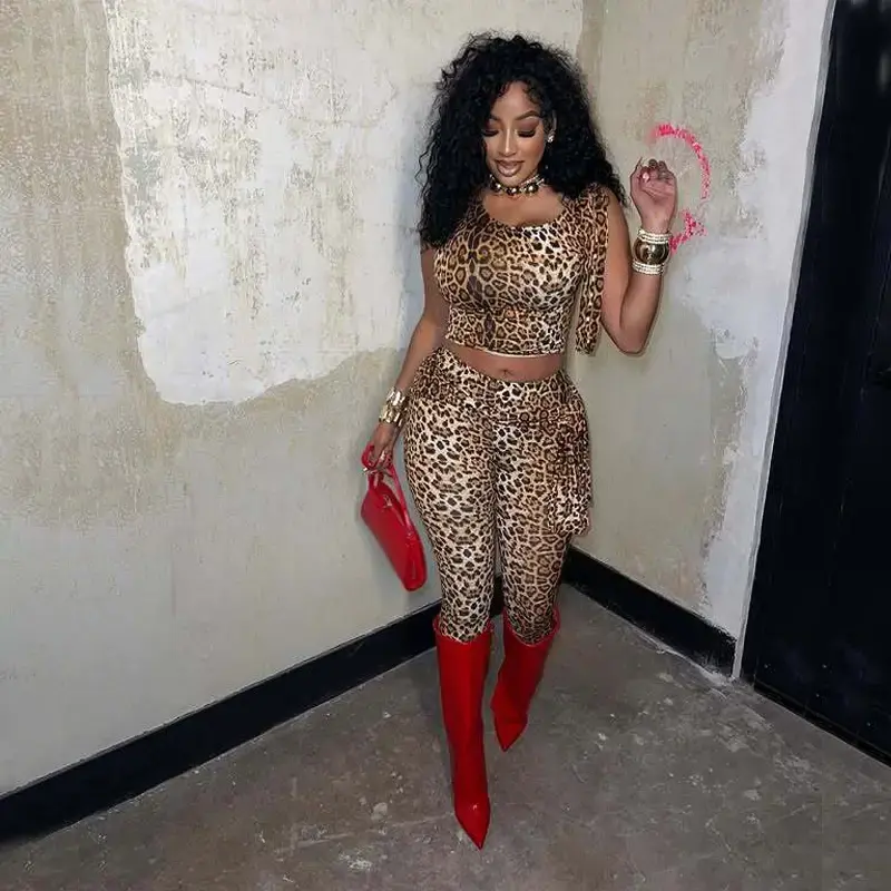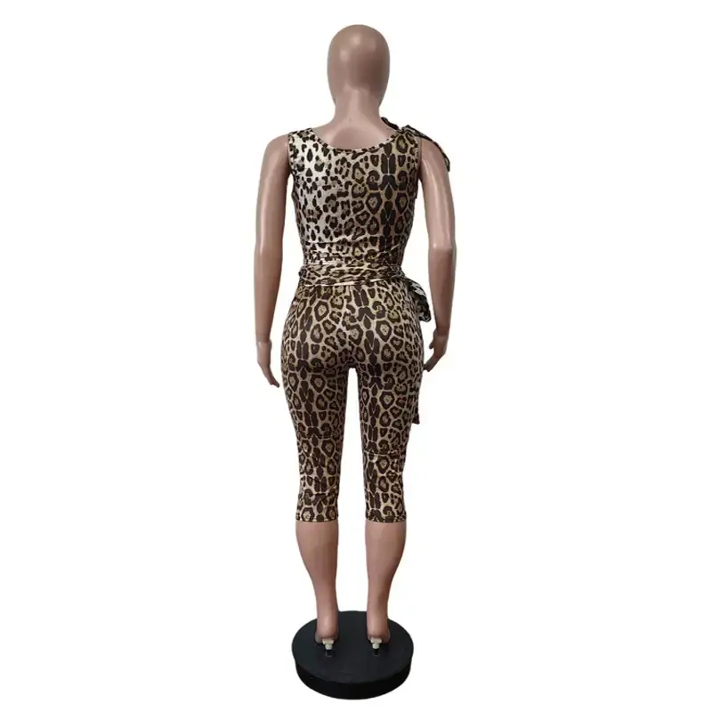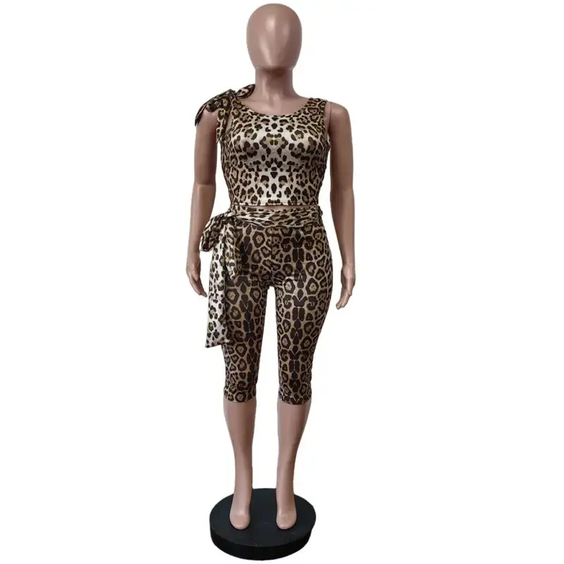 ชุดจั๊มสูทลายเสือดาวเซ็กซี่สำหรับผู้หญิง 2 ชิ้น ชุดบอดี้สูทเสื้อและกางเกงรุ่นใหม่