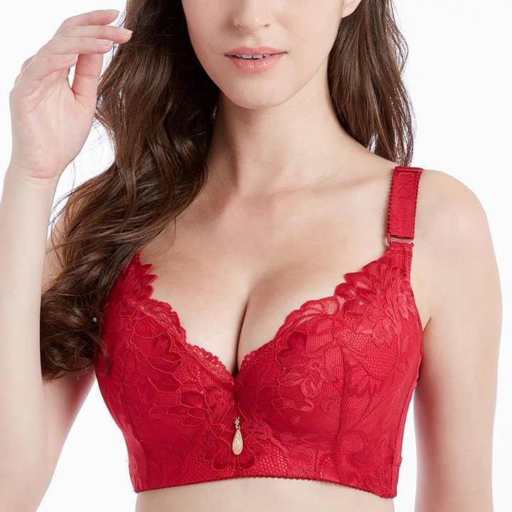 บราลูกไม้เซ็กซี่แบบดันทรงสำหรับผู้หญิง ไซส์ใหญ่ สายปรับได้ ถอดเปลี่ยนได้ โครงบาง ใส่สบาย