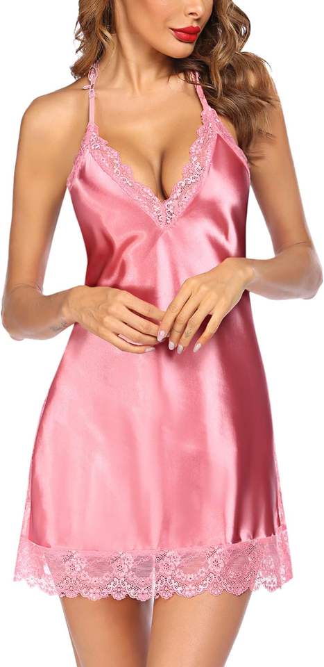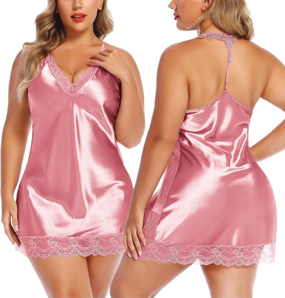 Women's Sexy Satin Lace Chemise Nightgown Full Slips See Through Sleepwear in Sizes S-4XL Lingerie Underwear