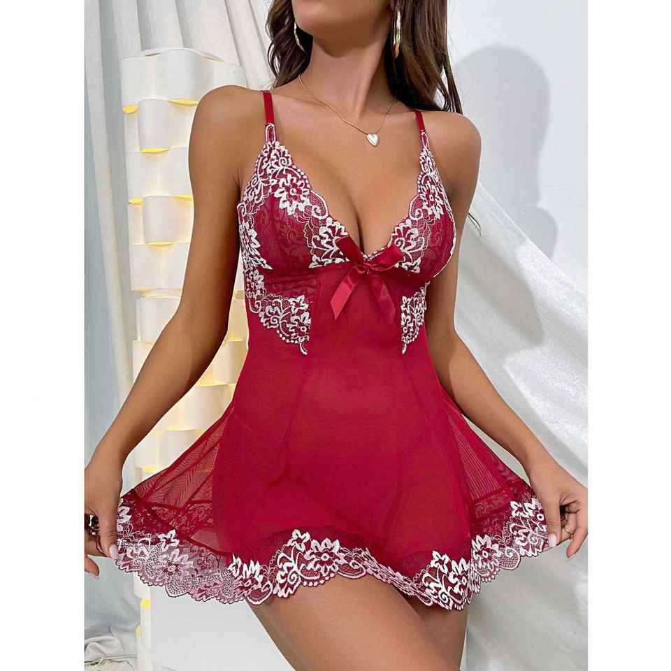 ชุดนอนเซ็กซี่ผ้าซาตินลูกไม้สำหรับผู้หญิง ชุดแฟนซี ชุดวันหยุด ชุดทำงาน ใยโพลีเอสเตอร์