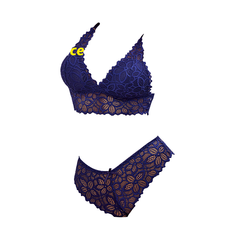 บราลูกไม้ทรงสามเหลี่ยมแบบเซ็กซี่สำหรับผู้หญิง แบบมีโครง ซีทรู คอวี เอวกลาง บราเสริมฟองน้ำ สายปรับได้ ระบายอากาศดี มีโลโก้ที่เอว