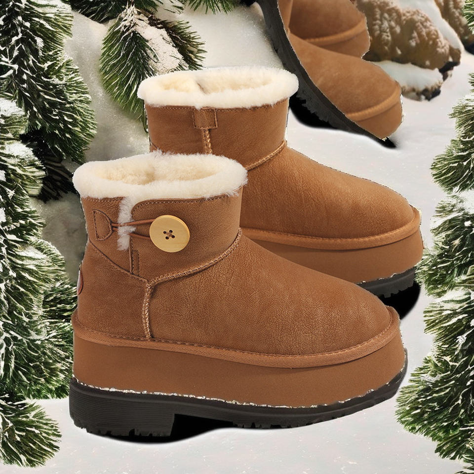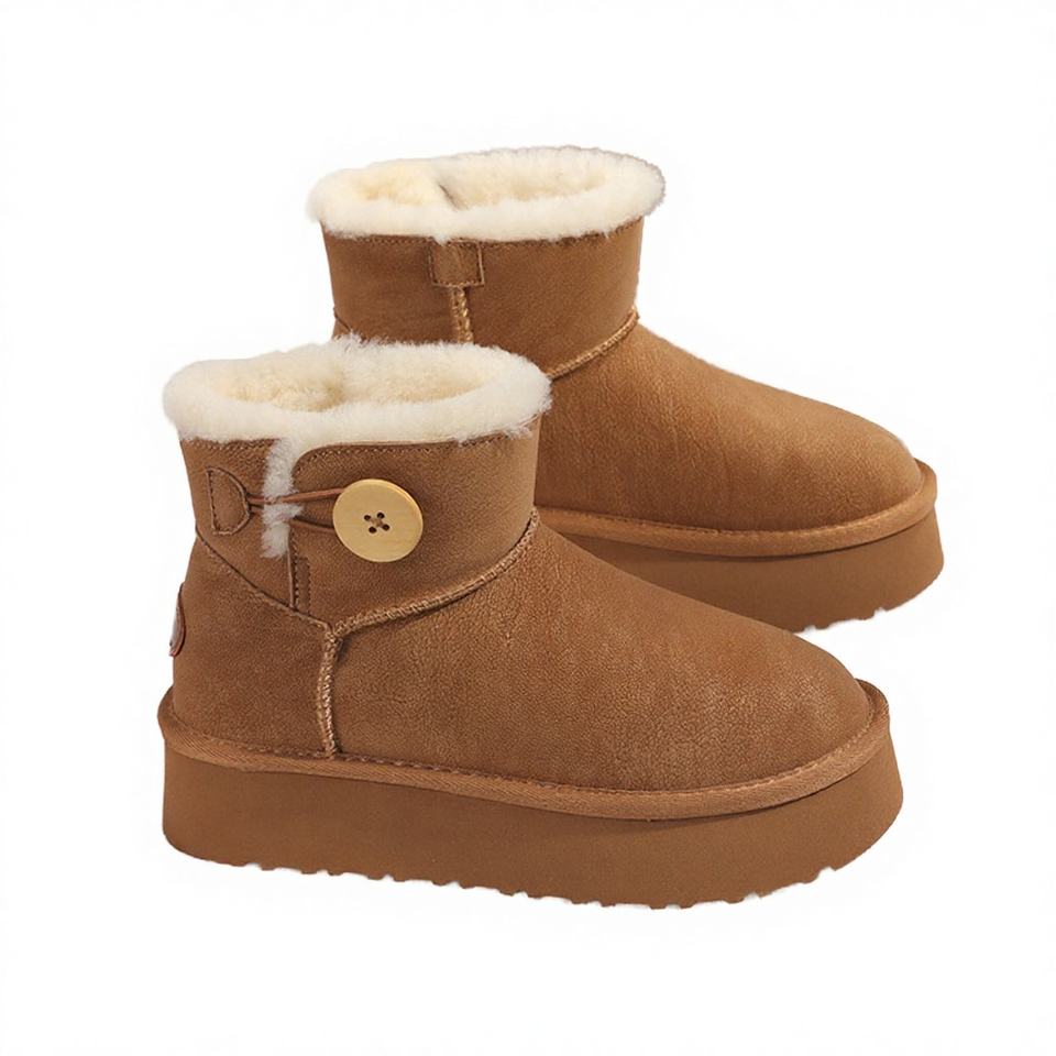 รองเท้าบูทหุ้มข้อผู้หญิง หนังแกะ ขนสัตว์ สำหรับฤดูหนาว พื้นหนา เพิ่มความสูง บุขนอุ่น น้ำหนักเบา กันลื่น