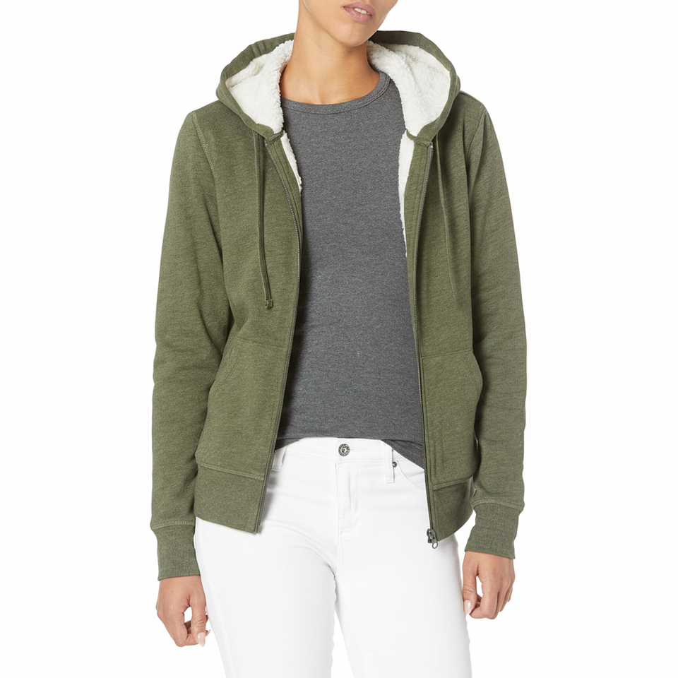 แจ็กเก็ตมีฮู้ดแบบซิปยาวขนแกะสำหรับผู้หญิง (มีขนาดพิเศษ)