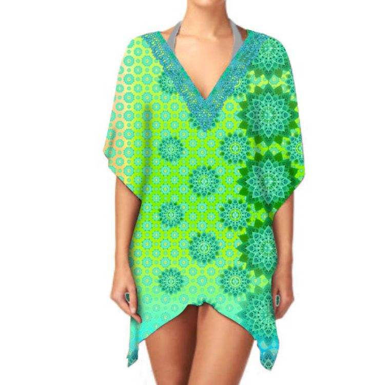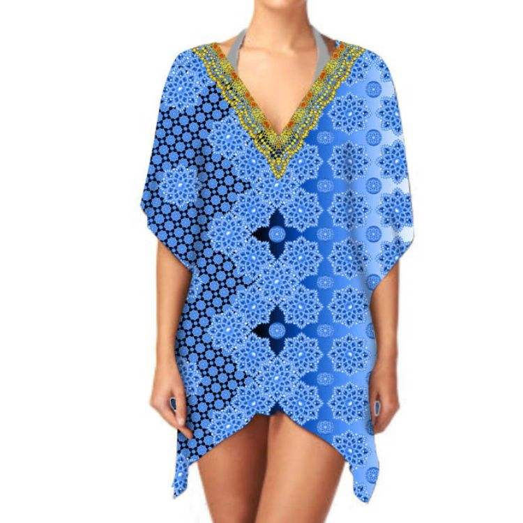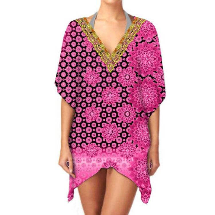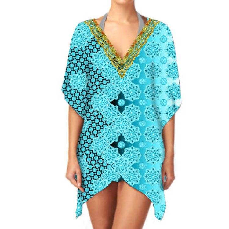 Women's Short Kaftan Dress V-Neck Breathable Fabric Summer Casual Wear Available At Best Price