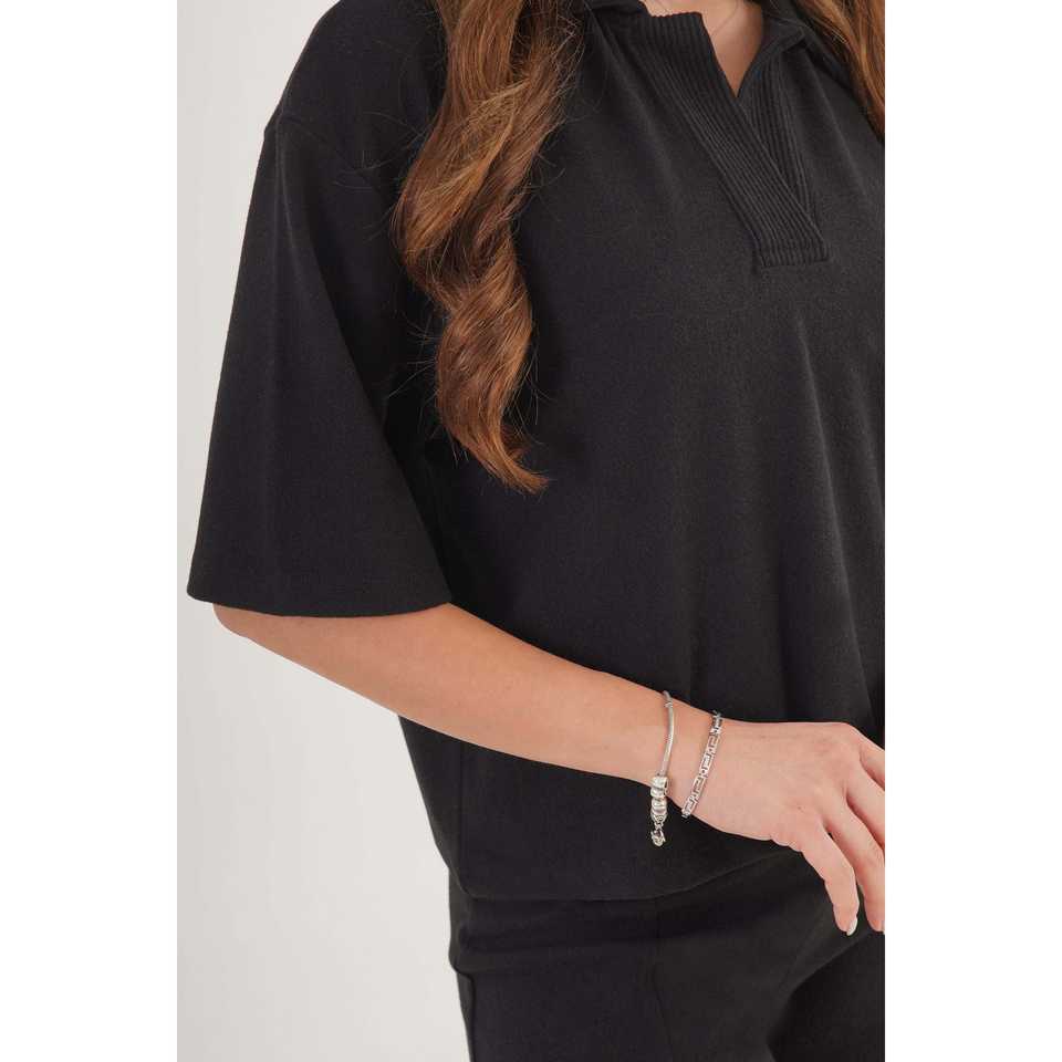 เสื้อเบลาส์แขนสั้นสีดำสำหรับผู้หญิง คอปกเสื้อเชิ้ต สินค้าขายส่ง