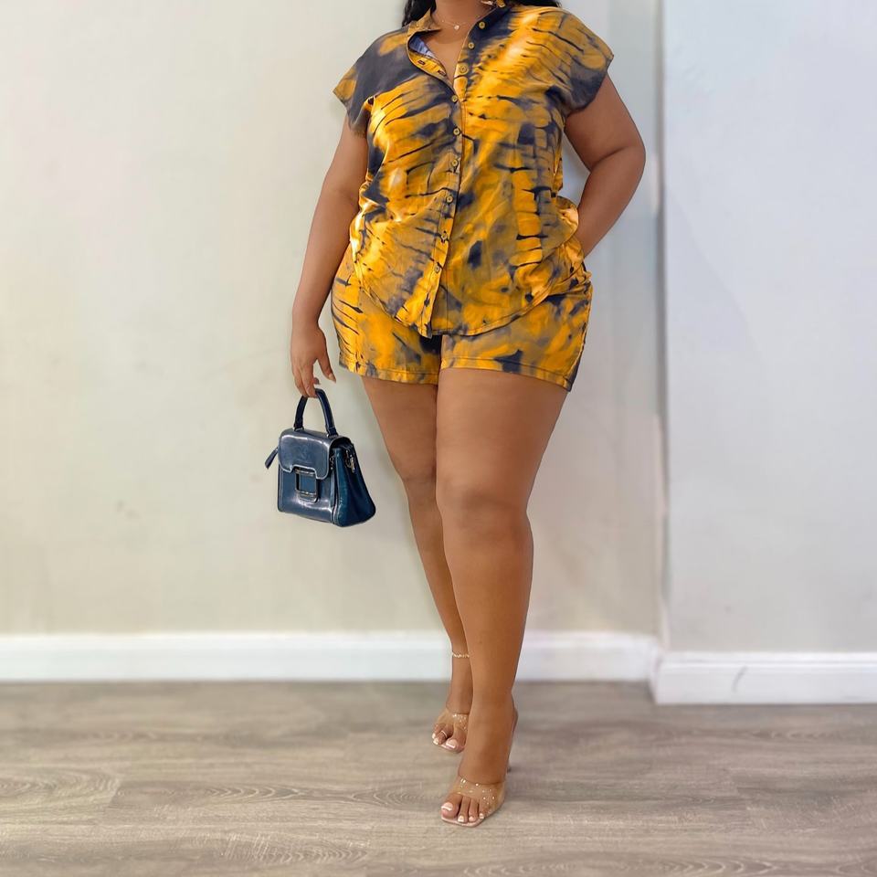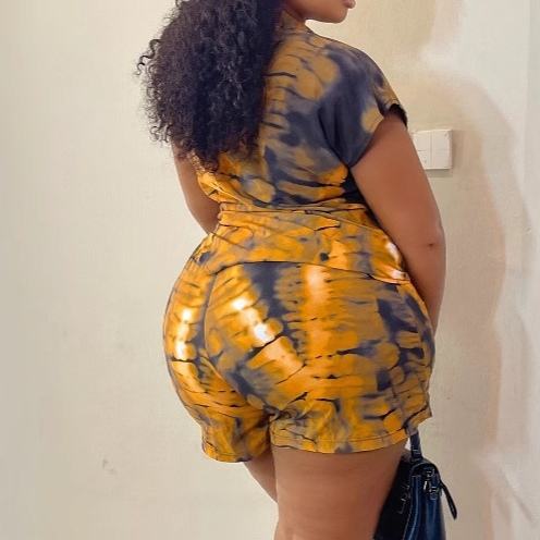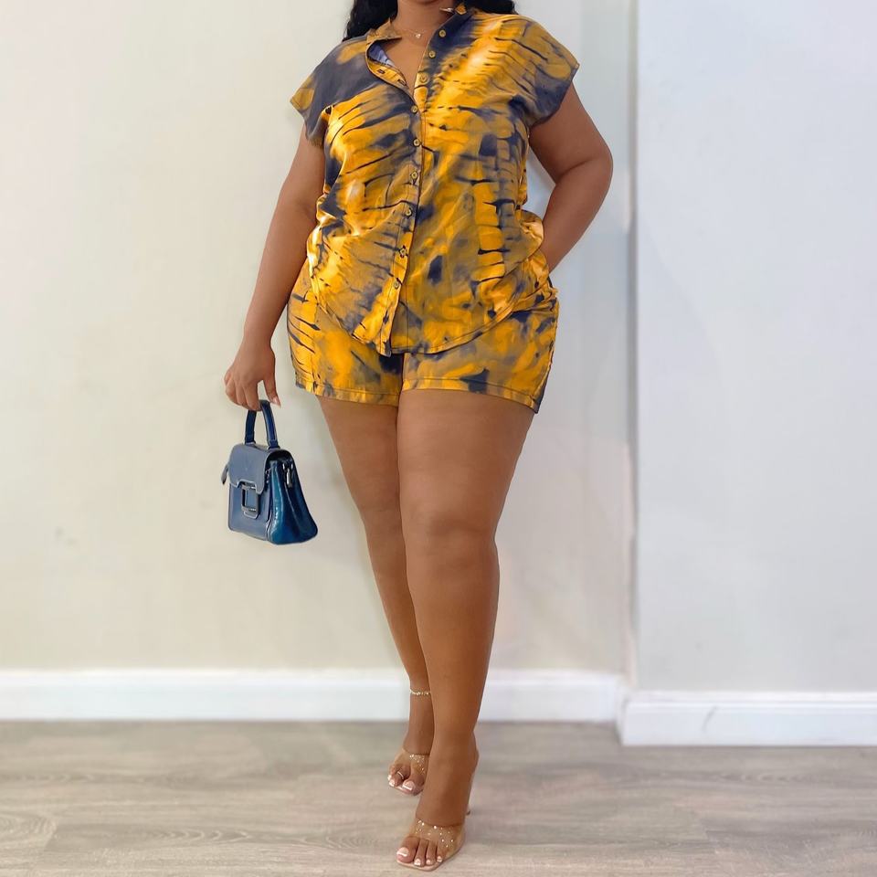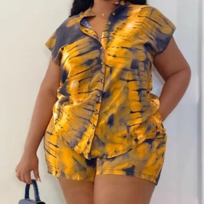 เสื้อเชิ้ตพิมพ์ลายโอเวอร์ไซส์แขนสั้นมีปกสำหรับผู้หญิงและกางเกงขาสั้นลำลองแฟชั่นแอฟริกันชุด 2 ชิ้นทรงหลวมแฟชั่น