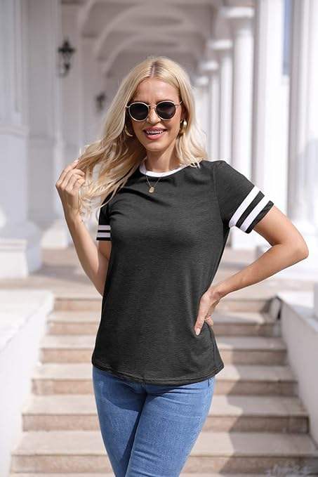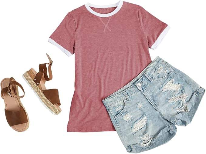 เสื้อยืดคอกลมแขนสั้นสำหรับผู้หญิงเสื้อบล็อกสีพื้นเป็นมิตรกับสิ่งแวดล้อมสำหรับฤดูร้อน