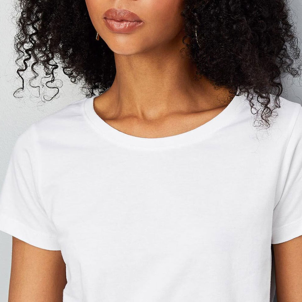 เสื้อยืดแขนสั้นผู้หญิง ผ้าถักน้ำหนักเบา 100% ผ้าฝ้าย เป็นมิตรกับสิ่งแวดล้อม แห้งเร็ว คอเสื้อแบบกำหนดเอง สไตล์ลำลอง แฟชั่นฤดูร้อน ใส่ได้ทุกวัน