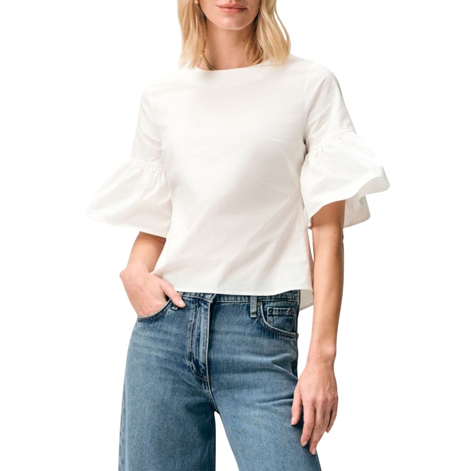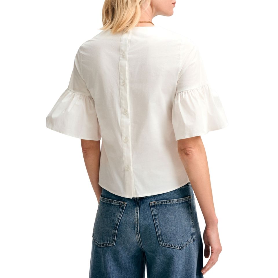 เสื้อเบลาส์แขนยาวผู้หญิง แต่งระบาย คอปกติดกระดุม ผ้าชีฟอง ผ้าฝ้าย 100% เสื้อลำลอง ทรงปกติ