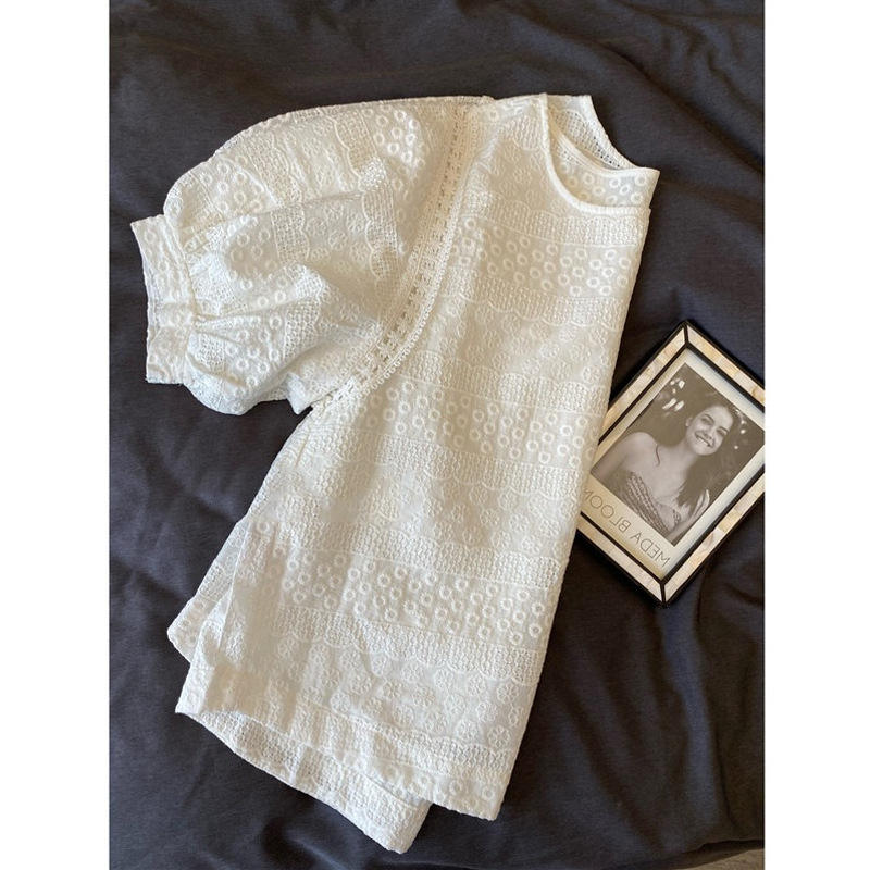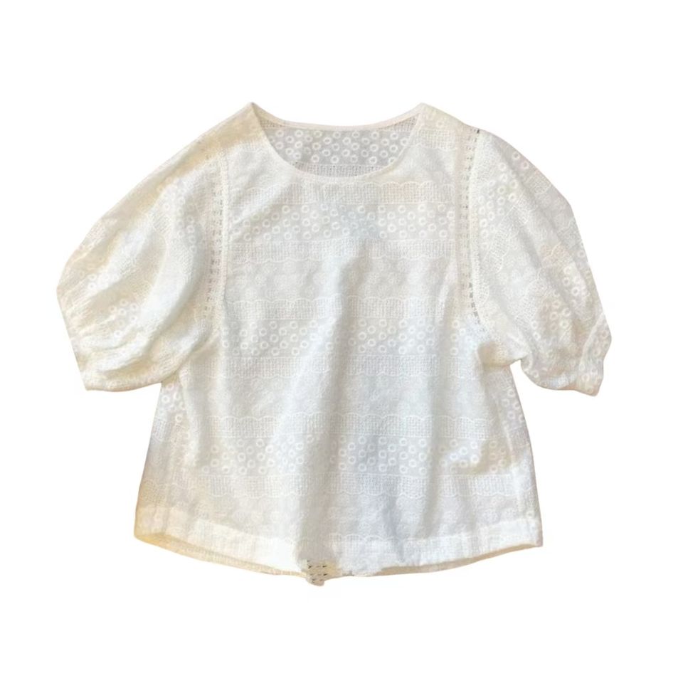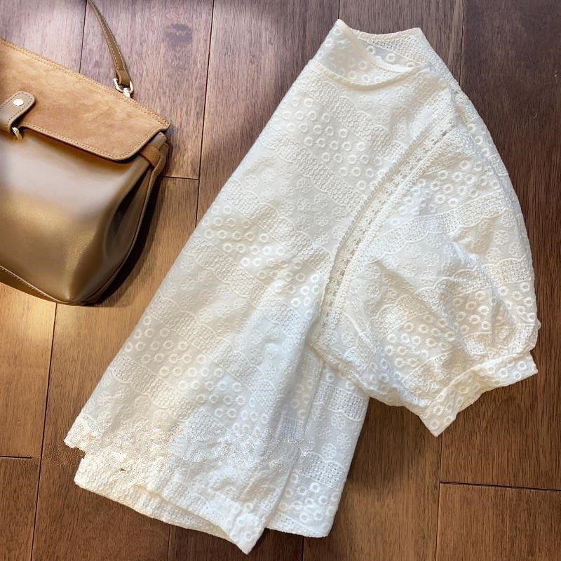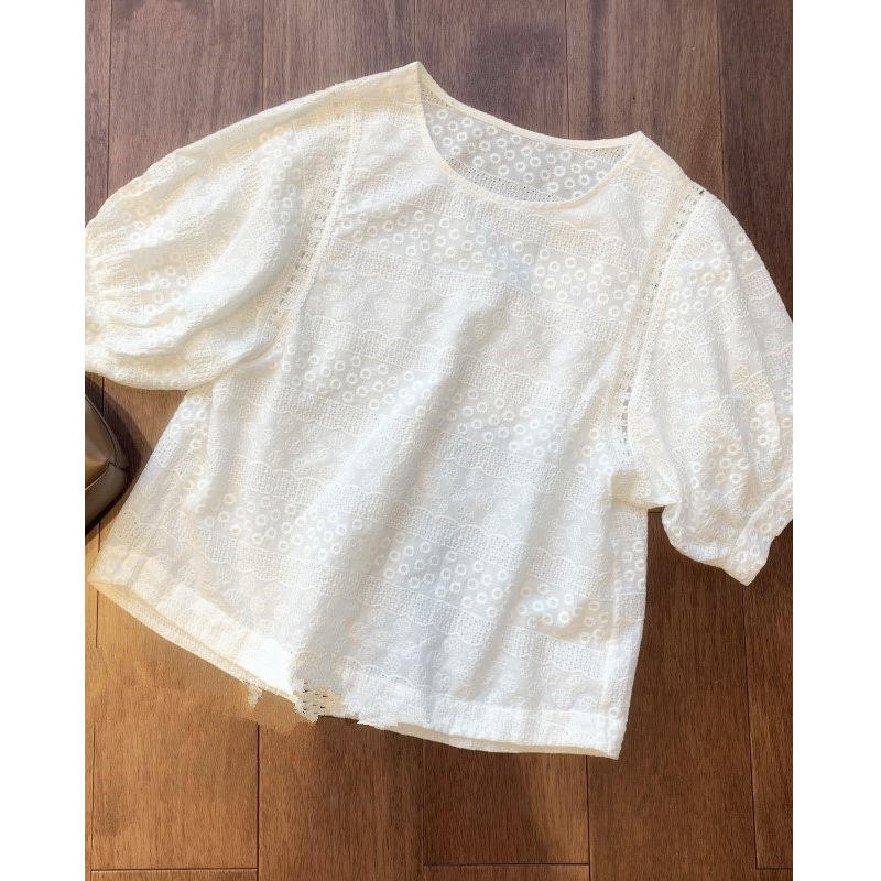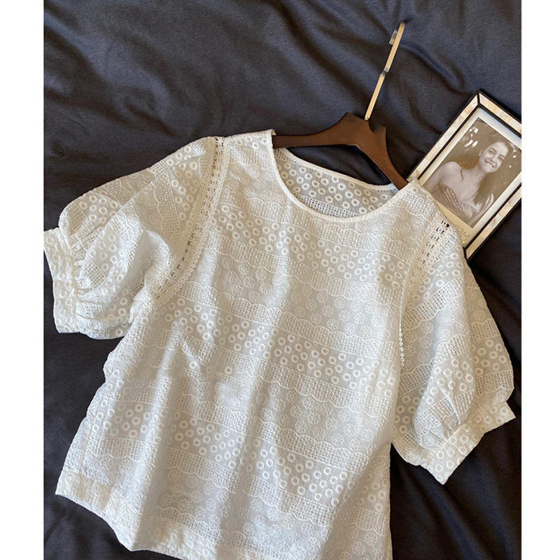 เสื้อลูกไม้แขนสั้นสำหรับผู้หญิงเสื้อลูกไม้แขนพองระบายอากาศได้ดีเสื้อมีลูกไม้ที่เหมาะกับการช้อปปิ้งสุดสัปดาห์