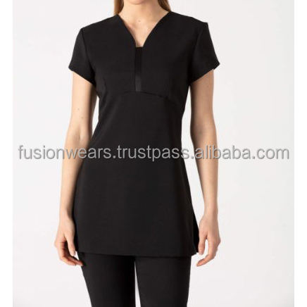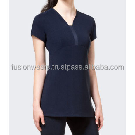 ชุดเครื่องแบบทำงานผ้าไหมแขนสั้นสำหรับผู้หญิงชุดเสื้อและช่างเสริมสวยร้านสปาแบบสั่งตัดโลโก้ได้ตามต้องการสำหรับโรงแรมด้านความงาม