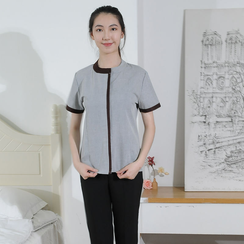 เสื้อเชฟแขนสั้นสำหรับฤดูร้อน แบบยูนิเซ็กซ์ ระบายอากาศได้ดี เหมาะสำหรับพนักงานต้อนรับในโรงแรม ผลิตจากผ้าโพลีเอสเตอร์/คอตตอน รับปักโลโก้ด้วยเทคนิคฮีททรานเฟอร์