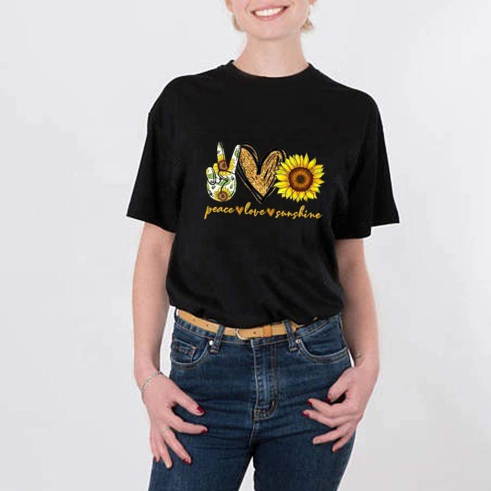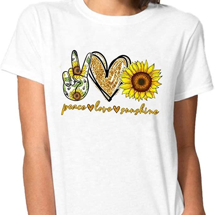 เสื้อยืดแขนสั้นผู้หญิงพิมพ์ลายดอกทานตะวัน,เสื้อยืดผู้หญิงเสื้อผ้าผู้หญิงกำหนดโลโก้เองได้