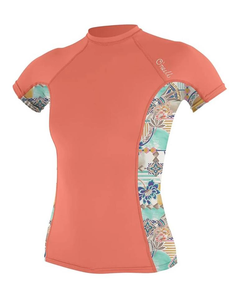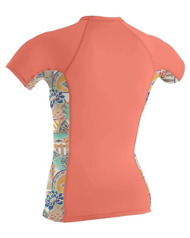 เสื้อโต้คลื่นแขนสั้นของผู้หญิงเสื้อออกกำลังกายเล่นกีฬากลางแจ้งพิมพ์ลาย UPF50โลโก้ตามสั่ง