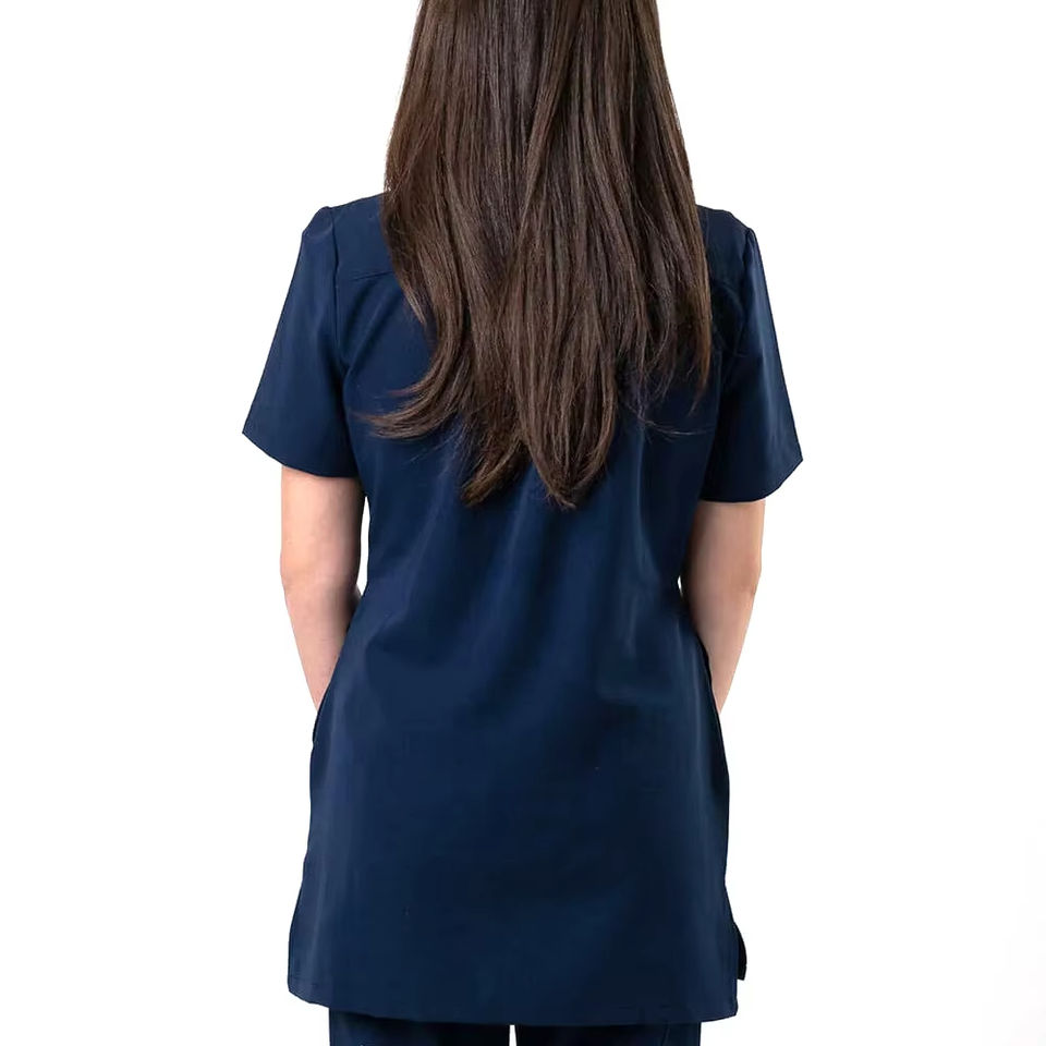ชุดสครับแพทย์สำหรับโรงพยาบาล แขนสั้น คอวี 3 กระเป๋า เป็นมิตรกับสิ่งแวดล้อม น้ำหนักเบา ตรวจจับรอยขาดได้ ปรับแต่งได้ สำหรับผู้หญิง