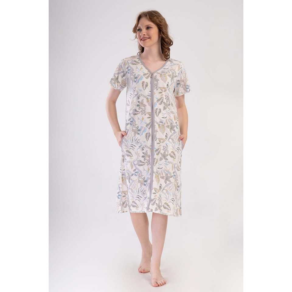 ชุดนอนสตรีแขนสั้นมีซิปและกระเป๋าสำหรับใช้ในบ้าน