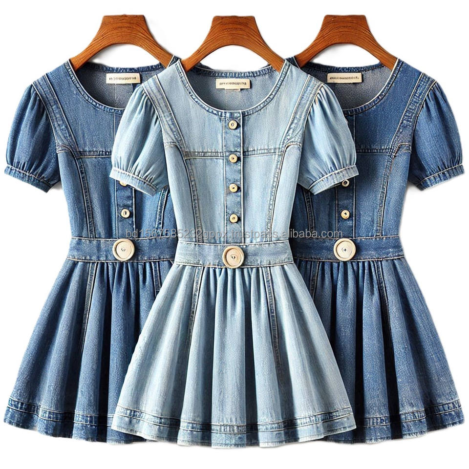 ประเภทผลิตภัณฑ์:ชุดเดรสยีนส์แขนสั้นคอกลม/คอวี/ปก-ลง