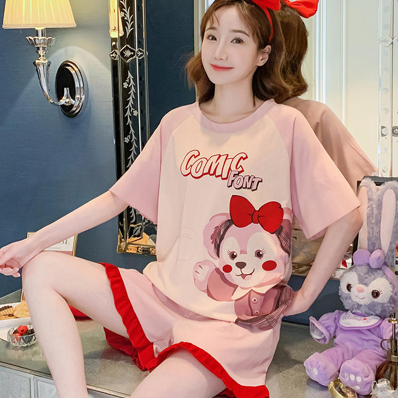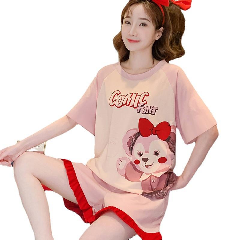 ชุดนอนความร้อนแขนสั้นของผู้หญิงชุดเสื้อผ้าใส่ในบ้านกางเกงขาสั้นการ์ตูนหวานสำหรับเด็กผู้หญิง