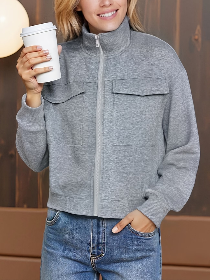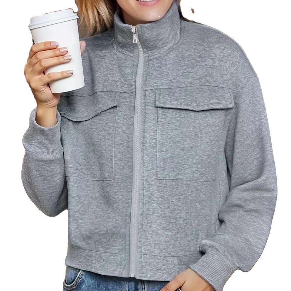 เสื้อแจ็คเก็ตขนแกะกันลมสำหรับผู้หญิง คอปกพับได้ ซิปปิด ลายทาง ดีไซน์วินเทจฟูฟ่อง สำหรับฤดูหนาว