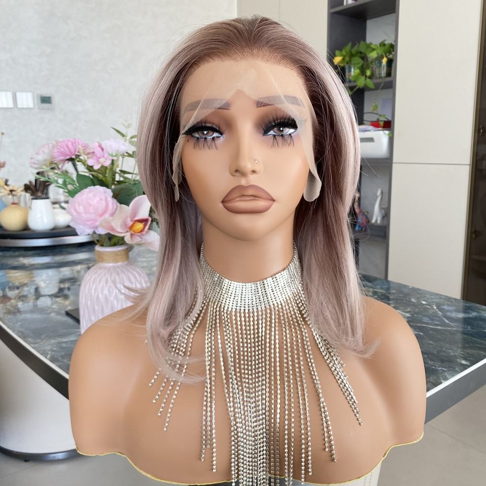 วิกผมสั้นสีชมพูอ่อนสำหรับผู้หญิง แบบ 13x4 วิกผมสังเคราะห์ทนความร้อน พร้อมเชือกผูกแบบใส สำหรับงานปาร์ตี้และแฟชั่น
