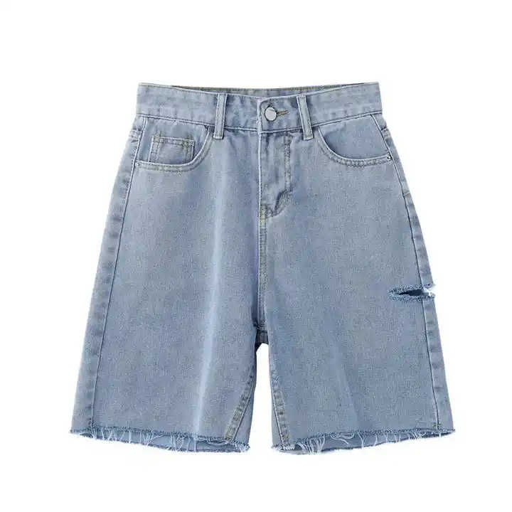 กางเกงขาสั้นแฟชั่นผู้หญิง กางเกงยีนส์ขาสั้นผ้ายืดขาดเซ็กซี่ กางเกงยีนส์ขาสั้นทรงหลวมสำหรับสาวๆ กางเกงยีนส์เอวสูงสำหรับผู้หญิง ชุดกางเกงยีนส์