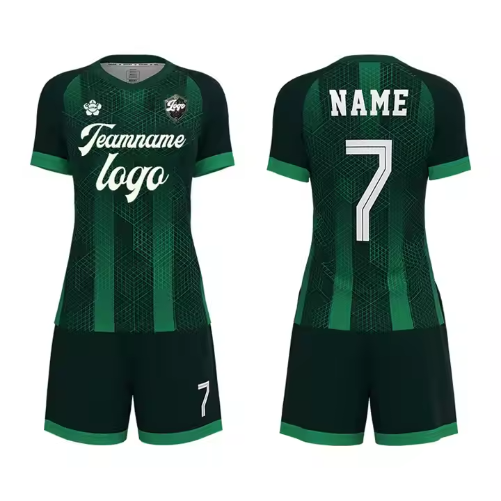 เสื้อกางเกงขาสั้นสำหรับผู้หญิงเสื้อฟุตบอลสีเขียวชุดเครื่องแบบสตรีเสื้อครึ่งแขนเสื้อฟุตบอลพิมพ์ลายซับลิเมชัน