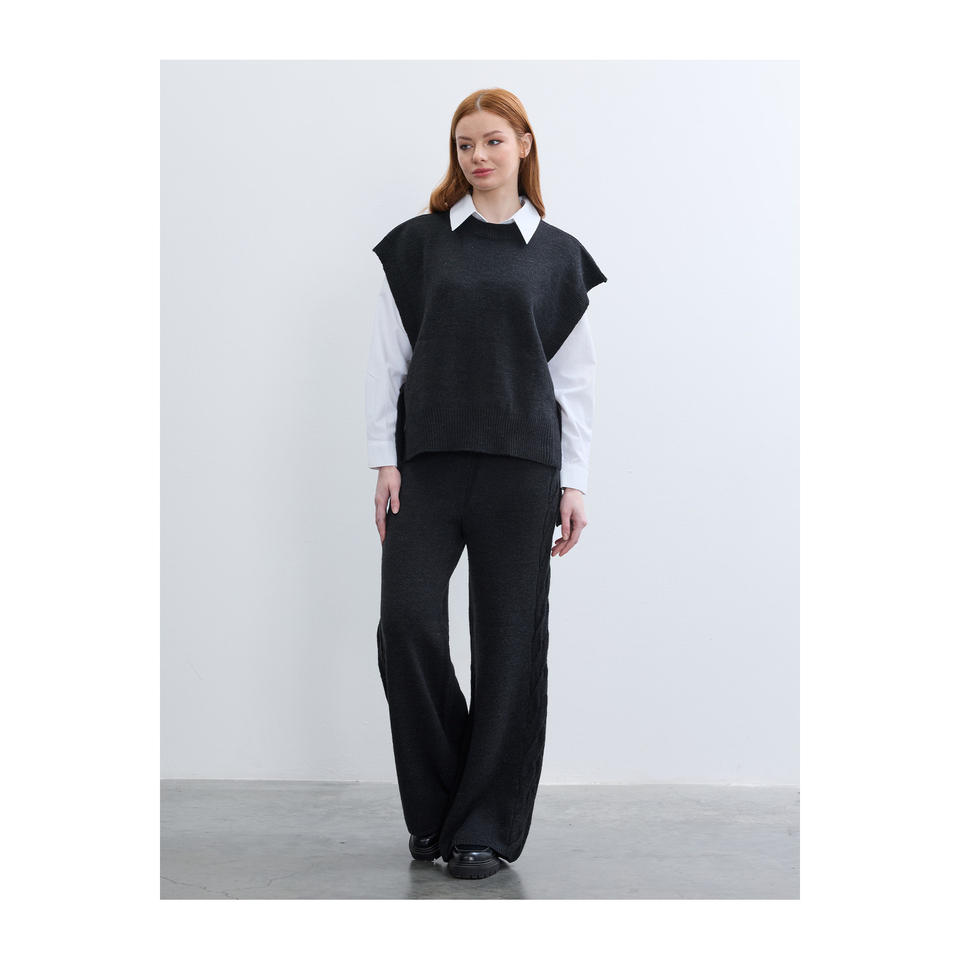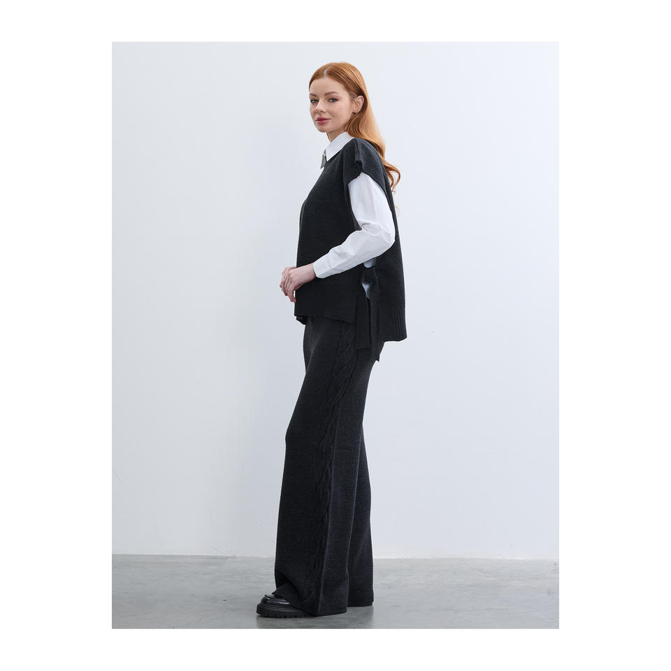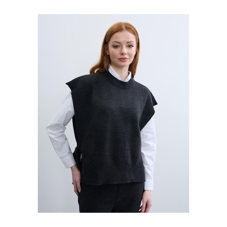 เสื้อสเวตเตอร์ผูกข้างแบบไม่มีแขนสีดำสำหรับผู้หญิง