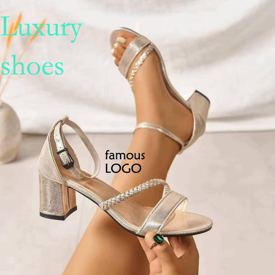 รองเท้าแตะแฟชั่นแบบมีสายรัดส้นหนาสำหรับผู้หญิงรองเท้าส้นสูงแบบสายไขว้รองเท้าไซส์พิเศษสำหรับฤดูร้อน