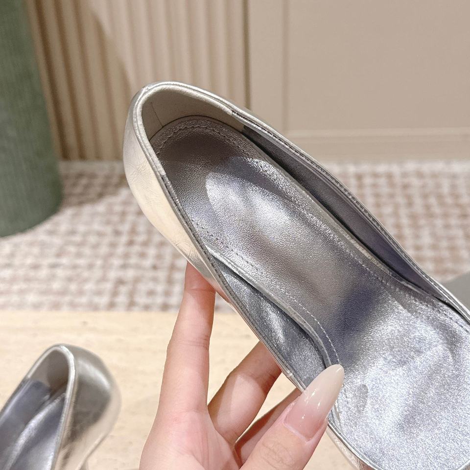 รองเท้าส้นสูงผู้หญิง ผ้าไหม 8 ซม. หนังแก้ว ปลายแหลม สวมแบบสลิปออน ซับในหนังแกะ พื้นยาง ไซส์พัมพ์