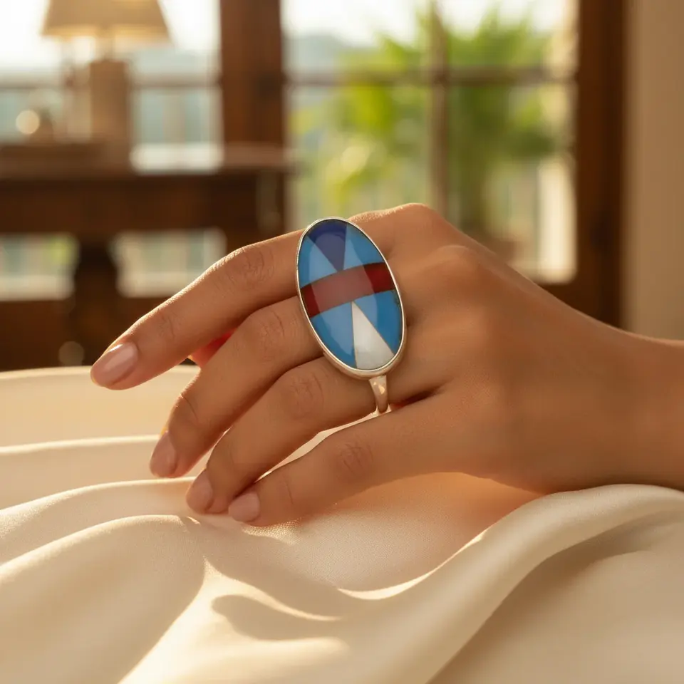 แหวนเงินทรงเรขาคณิตสำหรับผู้หญิง ชุบทองคำขาว 18K ประดับเพชรทรงรี ดีไซน์โดดเด่น วัสดุอัลลอยด์