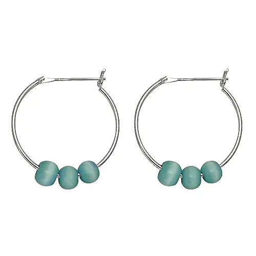 ต่างหูห่วงเงินประดับลูกปัดสีฟ้าสำหรับผู้หญิง เครื่องประดับแฟชั่น